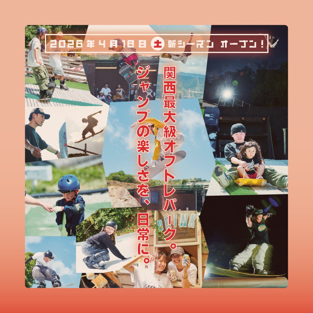 いつも大阪KINGSをご利用いただき、誠にありがとうございます。本年度、『関西最大級のオフトレパーク・大阪KINGS』は4月18日(土)11:15~より営業を開始いたします。 大阪KINGSは、オフトレ施設最多となる8コースを設置備えており、それぞれのレベルに応じた多彩なアイテムで、効率的に練習できる環境を整えています。 またJIBレーンも昨年大幅にアップデートし、初中級者の方でも安全にトライしやすいコースへと生まれ変わり、塩ビとナローBOXの2wayになりました。 以上の充実したコースに加え、BBQスペースやKINGS Cafeも併設しており、オフトレ以外の時間も楽しめる施設となっています。 リニューアル工事 3月末から4月にかけてリニューアルオープンの工事を行う予定です。 ・各マットのシートを新品に交換 ・アプローチのブラシ交換 ・JIBランディング改良&ブラシ新調・ホークスタートエリアリニューアル・上部メイン休憩所リニューアル ・ビッグミドルのSNOWTURF導入とフリーランゾーンの幅拡張(こちらはオープン後の6月ごろを予定しています。)※上記を予定しておりますが、変更の可能性がありますのでご了承ください。 初心者大歓迎!! 意外に思われる方も多いかもしれませんが、大阪KINGSをご利用される方の多くは、実は“初級者~中級者”です。 当施設では“オフトレの楽しさ”を大切にしており、初めてブラシを滑る方でも安全に楽しく挑戦できるよう、常時無料レッスン(初心者講習)を実施しており、スタッフが補助をしながら滑走をサポート、滑る際の姿勢やコツについても、その都度丁寧にアドバイスします。 また、火曜・金曜の第4セッション(20:15〜23:00)には、初めてご利用される方限定の予約制プログラム“FIRST KINGS”を開催しています。こちらは、1セッション分の施設利用料に加え、すべてのレンタル費用とレッスン代込みで2,400円でご利用いただける、初心者応援キャンペーンです!※”FIRST KINGS”は事前予約制となります。 ⇒FIRST KINGS詳細オフトレ施設には「上手い人しかいない」というイメージを持たれがちですが、大阪KINGSでは、初心者の方にもオフトレを安心して楽しんでいただけるよう、全力でサポートしていますので、まずは コチラ をお読みください。 さらに、初心者の方だけでなく、中級者以上の方へのサポートやレッスンも行っています。初中級者の利用が特に多いスモールキッカーでは、常にスタッフが滞在しており、いつでもワンポイントアドバイスを受けることができ、平日の毎日第2セッション(15:00〜16:30)には“フリーレッスンプログラム(FLP)”では、実際にスタッフと一緒に滑りながら、見て・聞いて・学べるレッスンを受けることができます。新しいトリックにチャレンジしたい方や、トリックの精度を高めたい方は、ぜひこちらのサービスをご活用ください!参加は無料で、途中参加・途中退出も可能となっております。 大阪KINGSの様子 大阪KINGSでの練習は雪山と違い、環境が安定していて、安全な反復練習が可能になります。自分のペースで通い、次の冬の楽しみが生まれるお手伝いをさせて頂きますので、気軽にご来場ください!最高のオフシーズンを過ごしましょう! ⇒営業時間・営業スケジュール 大阪KINGSについてのお問い合わせ先 TEL:0774-65-0525 WEBサイト -
